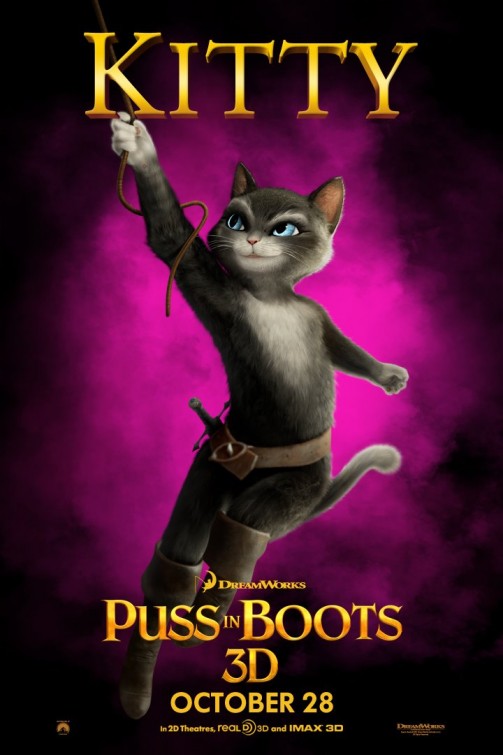 Después de terminar con los carteles promocionales del Gato con botas, llegan los respectivos afiches (muy puestos de moda), donde podemos apreciar a algunos de los personajes…