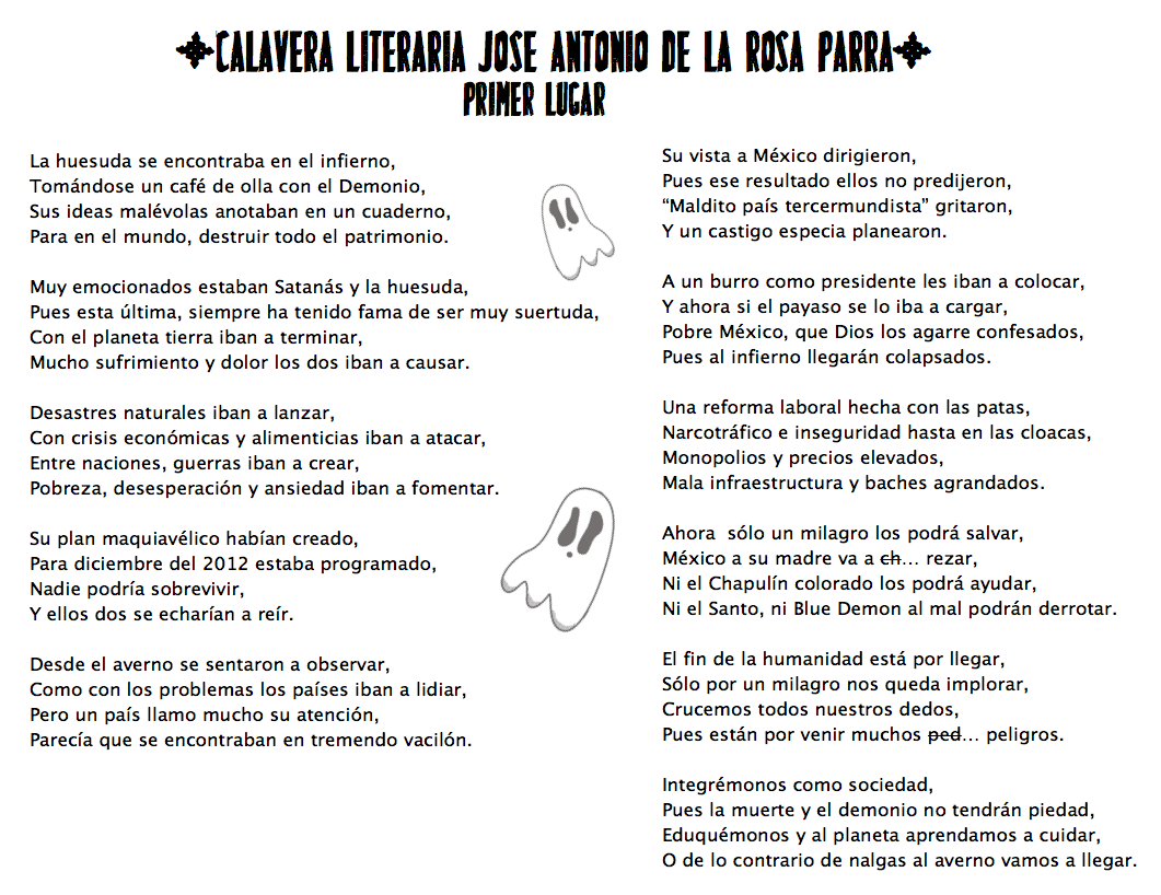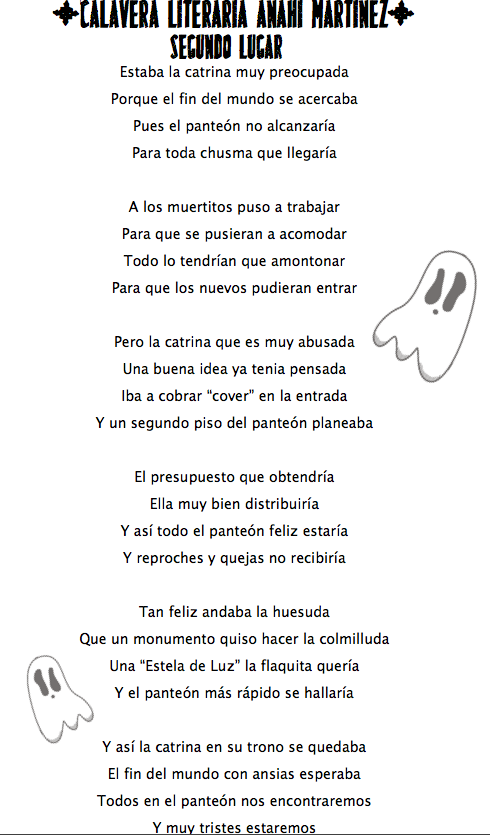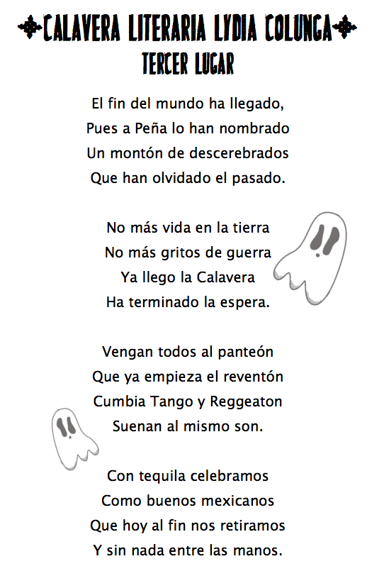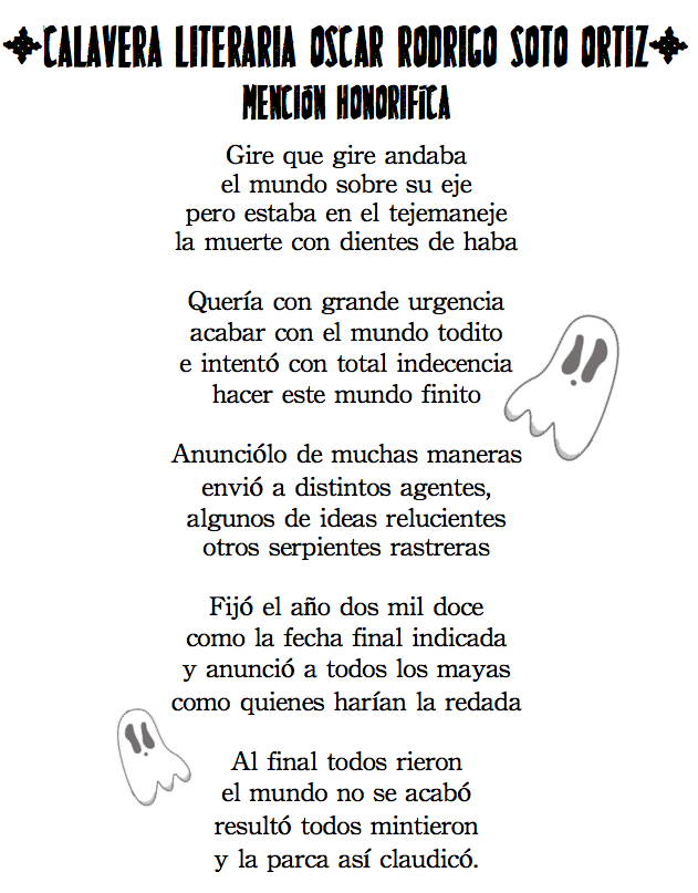 LOS GANADORES DEL SEGUNDO CONCURSO ANUAL DE CALAVERITAS LITERARIAS SON: